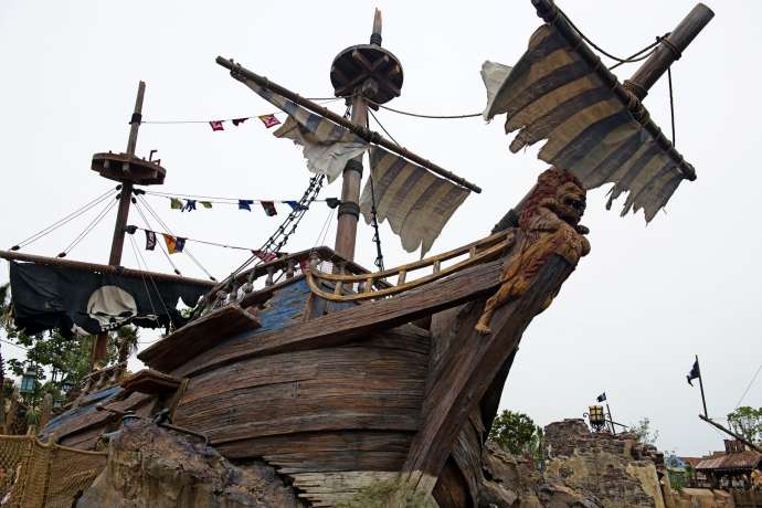 游客一踏入“寶藏灣”五大分區的第一處起就將完全沉浸在海盜的生活中,從這里開始游歷“船奇戲水灘”、“史洛比希堡”、“旱鴨子碼頭”和“小鎮”——每一處都各有風情,魅力獨特。整個園區融合了多種建筑風格,有兩艘巨型海盜船、海盜主題餐廳及一個歡樂的戲水區。無論老少都將贊嘆“加勒比海盜——沉落寶藏之戰”中的場景,或是在“凡迭戈劇院”近距離觀賞特技表演與雜技。