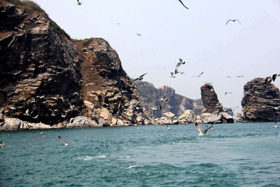 一條蛇每年至少要吃掉8—10只小鳥才能滿足生存所需的能量,這就意味著,每年將會有16—20萬小鳥供蛇食用。如果按蝮蛇捕食率10%來計算,每年將有200萬只小鳥飛落蛇島。因此,保護老鐵山的候鳥不僅在于保障遷徙,也是為了蛇島蝮蛇提供充足的食源。 鳥島又名海貓島,因為它們的叫聲像貓,因當地漁民把海鷗稱為“海貓”而得名。鳥島位于旅順口董砣子7.2公里處的渤海之中,總面積0.3平方公里。與蛇島相距7海里,島上的植物、巖石和土壤與蛇島接近,但它卻是海鷗生息的樂園,同時有白眉蝮蛇與之和平相處。個別饑不擇食的白眉蝮蛇冒犯海鷗,必然遭到海鷗的群起而攻之,最后被海鷗啄起丟人大海。最令人驚奇得是:如果將蛇島和鳥島的兩類蛇交換“場地”,都不能生存下去,至今這還是一個待解之謎。來到鳥島大有“遙看碧波小龍鳳,崖前飛鷗似云行”之感。現在我們大家如果感興趣的話可以自費乘坐我們的游艇需要90分鐘的環島觀看,蛇島是國家級自然保護區,一般人是很難得近距離觀看。蛇島周圍風景優美,有鹿石等名聲景點,在乘船過程中可以看見難得一見的野生海豚,因為這里是海豚繁殖區。