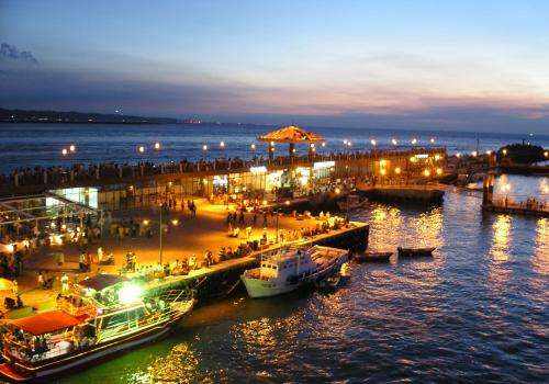 淡水漁人碼頭原只是一個(gè)傳統(tǒng)的小漁港,如今,漁人碼頭不但擁有一座美輪美奐的浮動(dòng)碼頭,其中漁人碼頭最著名的景點(diǎn),就是330多公尺的木棧道、堤岸咖啡和超大的港區(qū)公園,版權(quán)所有山東聊城聊之旅國際旅行社有限公司,轉(zhuǎn)載必究!構(gòu)成一個(gè)環(huán)狀動(dòng)線,讓人們可以完整流暢的體驗(yàn)漁港風(fēng)情,站在步道遠(yuǎn)眺對面的觀音山和出海口盡頭的臺(tái)灣海峽,看著夕陽從水平面上緩緩落下,美景之盛,令人流連忘返。