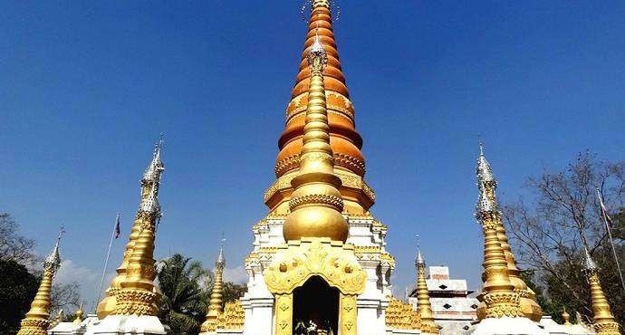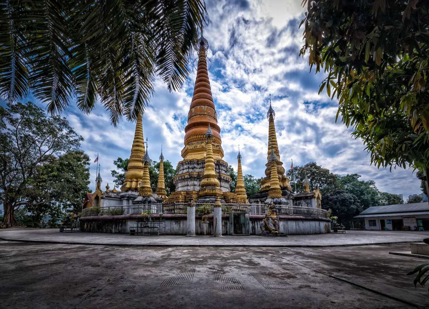 姐勒大金塔姐勒金塔始建于17世紀,由17座塔組成的群塔,塔身貼滿金色磁磚,除主塔外,四周環繞著16座小塔,塔身均涂金粉,金碧輝煌,如眾星拱月,雄偉壯麗。 塔基用長方青石建成,塔群為鋼混結構,主塔高39.5米,塔身為正八棱形,呈圓錐體,貼滿金色瓷磚,頂尖軒有電化鋁制成的寶傘、風標,系著上百只風鈴。版權所有山東聊城聊之旅國際旅行社有限公司,轉載必究!遠遠望去,金光耀眼的金塔,掩映在大青樹群之中,微風吹來,鈴聲叮當悅耳,反映出傣族工匠數百年前,獨具民族特色的建筑構思和藝術成就。此塔是東南亞的著名佛塔之一,旁有佛寺供奉。每年的潑水節,都要舉行3天隆重的佛會,非常熱鬧。