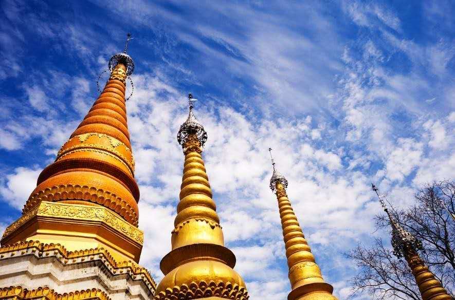 歷盡十年滄桑,1981年,重新修建新塔,歷時數年,在原塔基上重現了塔的原貌,新塔采用磚土結構,主塔較舊塔高10余米,外圍小塔16座,依次漸小,主附塔頂均冠于金箔華蓋,微風過處,風鈴叮當,令人神往。版權所有山東聊城聊之旅國際旅行社有限公司,轉載必究!姐勒金塔修復后,每年潑水節前,佛教徒都在此舉行佛事大擺。境內外佛爺、和尚、尼姑紛紛前往講經頌佛。姐勒金塔又恢復了昔日佛教圣地的殊譽。