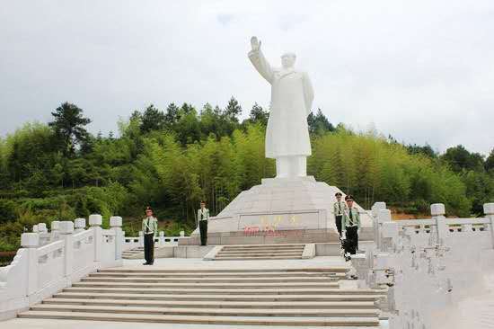古田會議會址是一座清朝宗祠建筑,建筑面積826平方米,始建于1848年,稱廖氏宗祠,又名“萬源祠”。它座東朝西,背靠參天古木林。在這片茂密樹林掩映下的“古田會議永放光芒”八個紅色大字熠熠生輝,數里之外便赫然躍入眼簾,樹林背后不遠處是高聳而立的筆架山,當地百姓稱之為“毛公山”(因酷似毛主席臥睡睡姿而得名)。