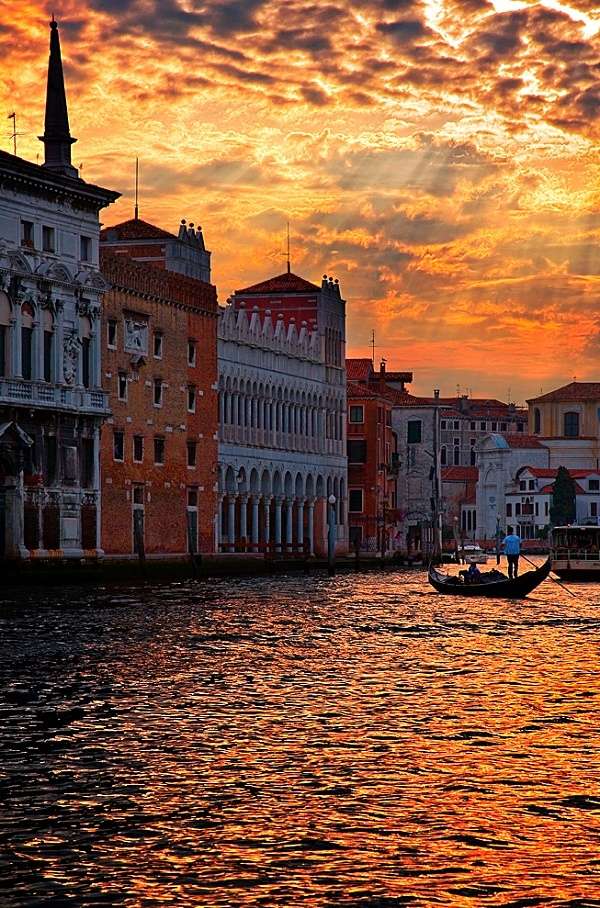 威尼斯大運河被譽為威尼斯的水上“香榭麗舍”大道。在河道的兩邊,散布著各式各樣的古老建筑,既有洛可可式的宮殿,也有摩爾式的住宅,當然也少不了眾多的富麗堂皇的巴洛克和哥特式風格的教堂。文藝復興時代,許多偉大的藝術家都在這些教堂里面留下了不朽的壁畫和油畫作品,至今仍吸引著世界各地的無數游客和藝術家。此外,遍及運河兩岸的店鋪、市場以及銀行等等,也給這個水上大都市增添了無窮的活力。
