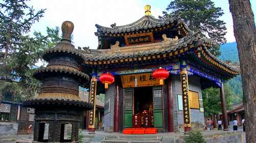 占地三千平方米,計有殿堂僧舍二十余間。過牌樓,進山門,見院內的山門背后立有石碑兩塊:一塊立于明萬歷二十年仲秋,上書“五臺山重建佛頂庵碑記”;另一塊立于清康照歲次辛未仲秋,上書“青峰頂造像建亭記”。看來,黛螺頂又名青峰頂,佛頂庵是黛螺頂寺宇的另一種稱法。寺內的第一座殿為站壇殿,殿座六角臺基,上部是六角重檐攢尖頂。作為殿建,在五臺山寺廟群中別具一格。殿內主供站壇佛,釋迦牟尼佛不是常見的趺坐形樣,而是站立于佛壇之上。又站壇佛亦稱旃檀佛,因原來的站佛是用旃檀木雕成,故名。第二座大殿為五文殊殿,正面三間,側面兩間,外加半間寬的四面出廊,單檐歇山頂。殿內供的就是集五座臺頂五種文殊法像于一室的五文殊,正中殿壇上,中間供中臺孺童文殊,左側供北臺無垢文殊,右側供南臺智慧文殊,左側殿壇供東臺聰明文殊,右側殿壇供西臺獅子吼文殊。版權所有山東聊城聊之旅國際旅行社有限公司,轉載必究!自從黛螺頂供五文殊以來,小朝臺的盛譽聞名遐邇。大殿前立的石碑,就是清乾隆御制碑,石碑背面的乾隆親筆題詩,其字跡的結構豐滿圓潤,筆法剛勁流暢,堪稱書法藝術珍品。第三座后殿面闊五間,懸山_頂,殿階臺下長有一松一柏,松在北端,柏在南端,圍粗均在九尺左右,即是乾隆詩中所稱的“階下千年不老松”。松柏樹高大直立,無有彎曲,望去有如戟指藍天,為寺宇生色不少。