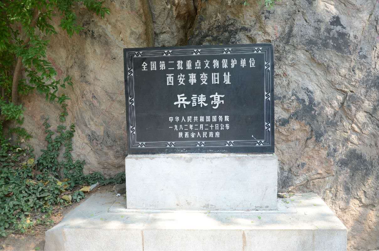 這座高4米,寬2.5米的石亭,建于1946年3月,由胡宗南發起,黃埔軍校七分校全體士官募捐而成,名曰“正氣亭”,解放后,該亭更名為“捉蔣亭”,1986年12月在紀念“西安事變”50周年前夕,為了緩和兩岸關系,再次易名為“兵諫亭”。