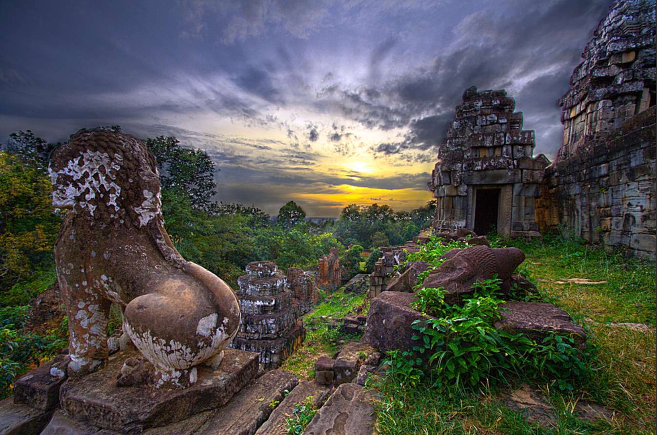 建于耶輸跋摩(889~910年在位)統(tǒng)治時期,這是吳哥幾座代表須彌山的寺廟(包括吳哥窟)中的第一座。盡管這兒仍然是拍攝遠處落日余輝中的吳哥窟的絕對山頂位置,但令人傷心的是,如今的巴肯山神廟已經(jīng)熙來攘往,不再是看日落的最佳地點了。看日落較為安靜的地點是科榮寺(PhnomKrom)的寺廟群,從那兒還可以俯瞰洞里薩湖和比粒寺(PreRup)。