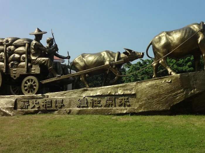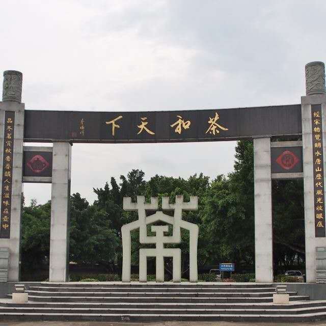 因而頗有意思。在牌樓兩旁寫著“清和”、“精儉”、背后是“誠敬”、“美倫”這八個(gè)大字是代表著茶道精神,也是茶博物院的景區(qū)質(zhì)量口號。在牌樓的左側(cè),有一座5米高、15米長的照壁,正面浮雕刻有五位對中國茶文化做出重大貢獻(xiàn)的人物:神農(nóng)、陸羽、蘇軾、蔡襄、乾隆。