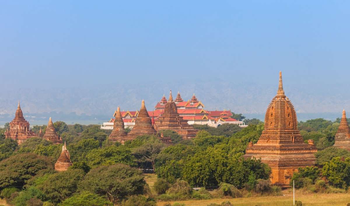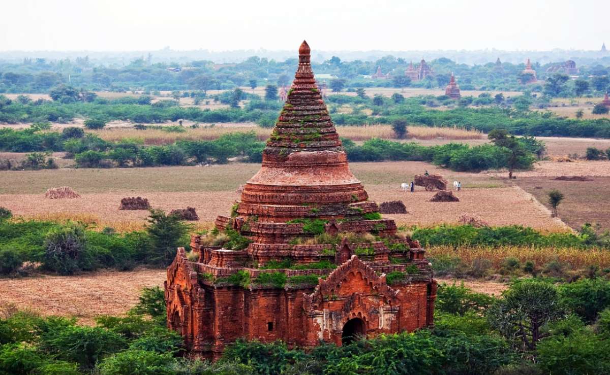 蒲甘地區(qū)面積約四十二平方公里,可分為舊蒲甘、新蒲甘和娘烏三部分,舊蒲甘是中心,是佛教遺址所在地,蒲甘地區(qū)的大部分精華就集中在這里;從舊蒲甘往南3公里為新蒲甘,集中了居民居住點和商業(yè)點,是一個整齊的新城鎮(zhèn);而從舊蒲甘往東北行約4公里便到了另一個小鎮(zhèn)娘烏。三個部分之外是大片的荒野。