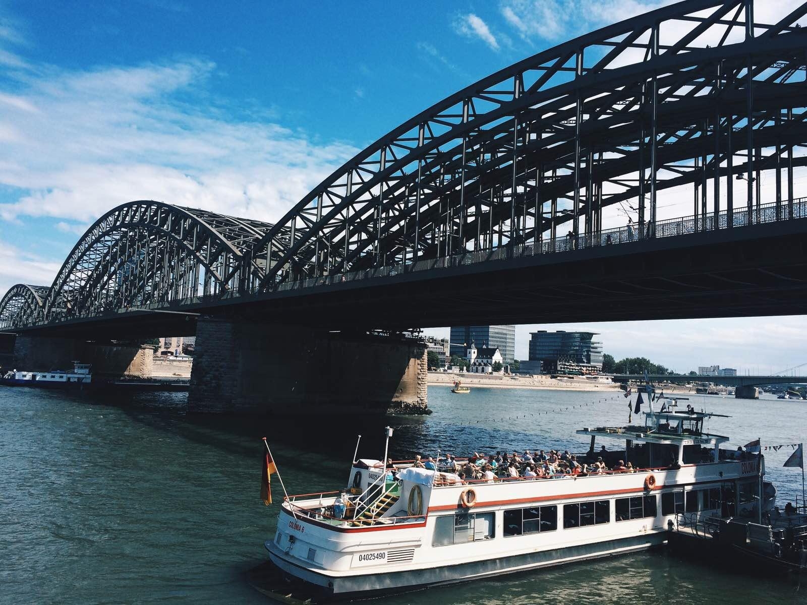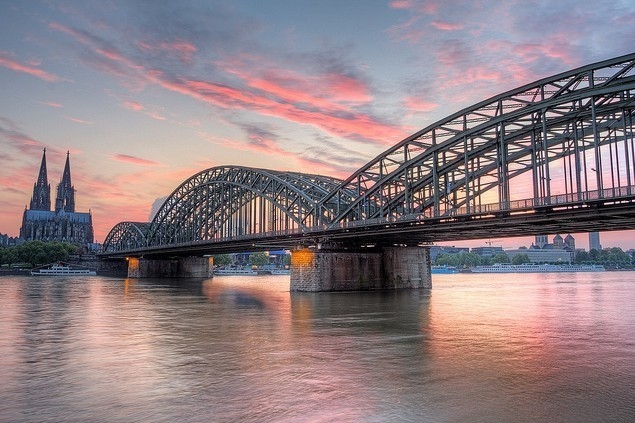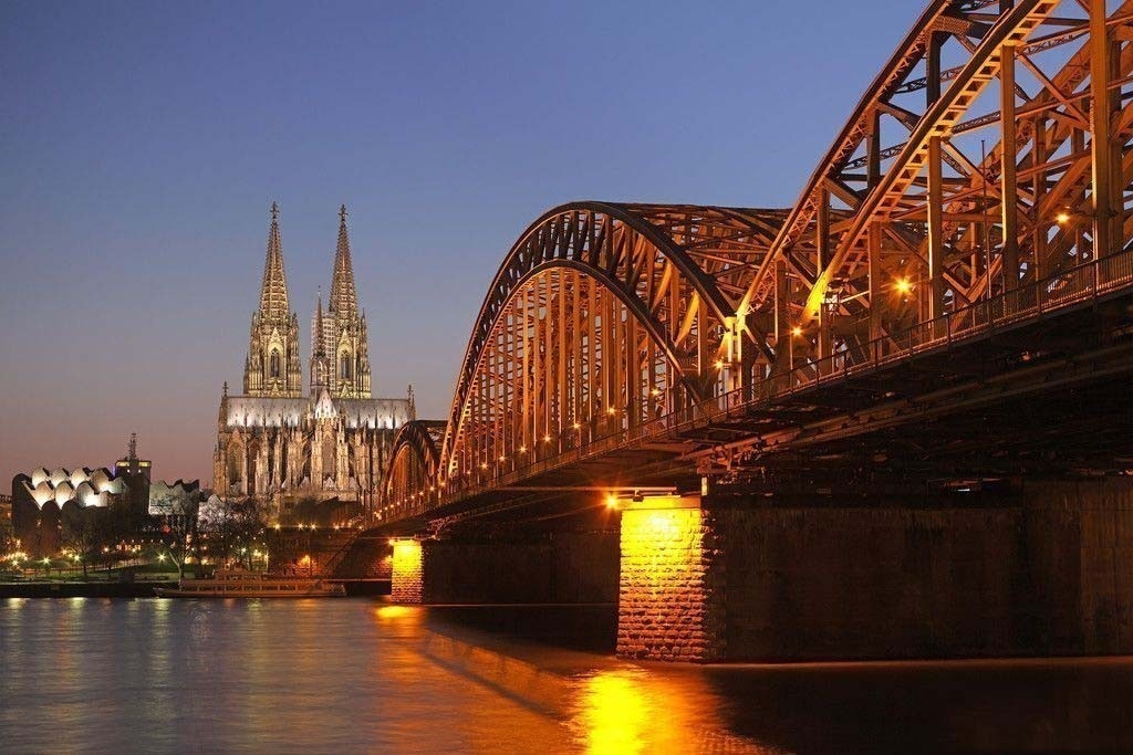早在1859年在這個位置上就已經建起了一座有兩股鐵路的大教堂橋,但是到20世紀初這座橋無法承受不斷提高的交通量。因此從1907年至1911年它被霍亨索倫橋取代。版權所有山東聊城聊之旅國際旅行社有限公司,轉載必究!這座橋由三座平行的橋組成,每座橋上有三個鋼鐵桁架拱,橋上共有四顧鐵路和一條公路。雖然在造大教堂橋的時候就已經有人批評橋和火車站的位置,但是霍亨索倫橋還是依照其前身的走向,直接位于大教堂的軸心線上。