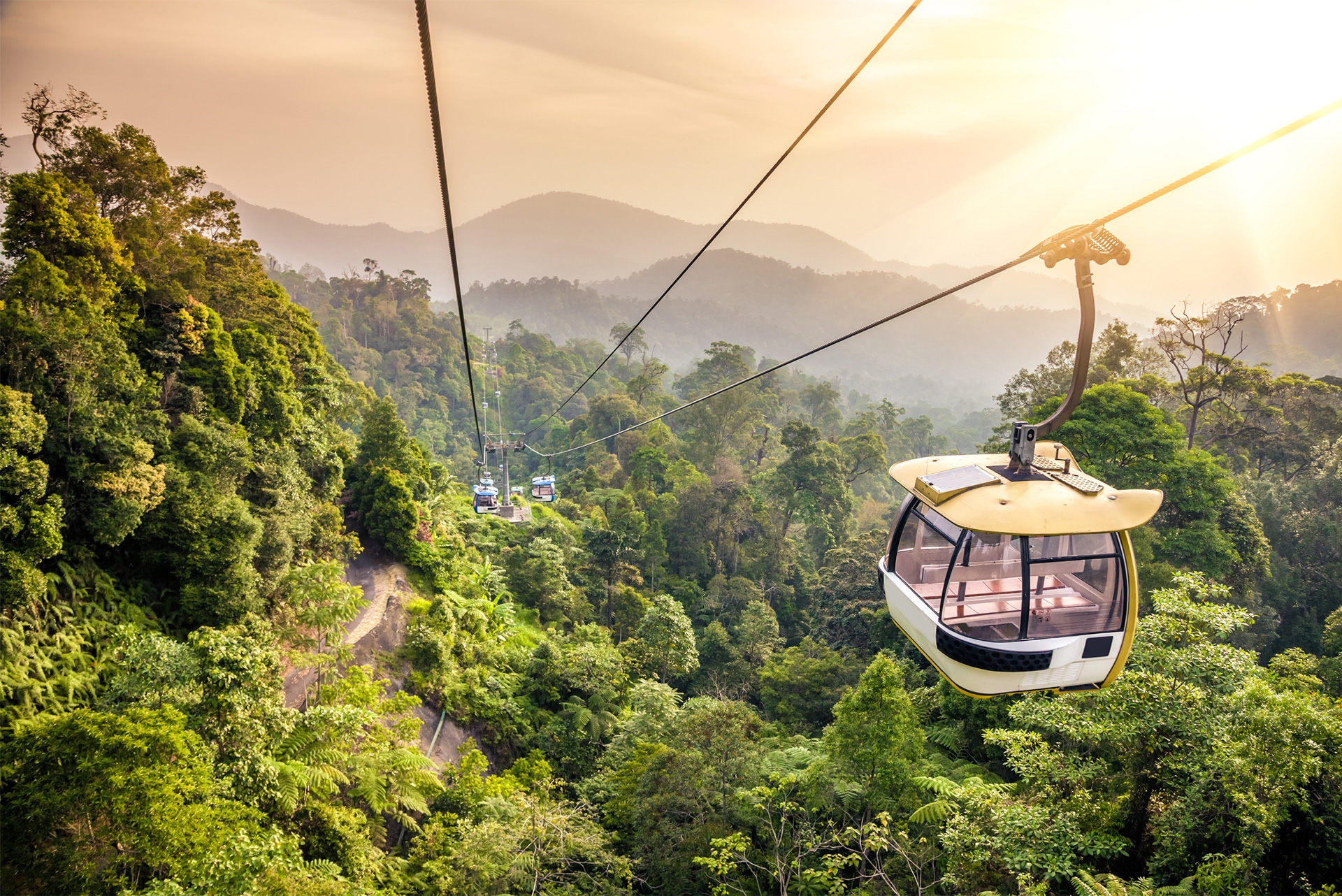云頂纜車從位于梧桐再也的云頂纜車站出發,直達美星酒店。云頂纜車馬來西亞第四任首相拿督斯里馬哈蒂爾·本·穆罕默德醫生于1997年2月21日主持開幕。云頂纜車以每8人一車廂并在一小時內載送2000名乘客上山。它的極速為每秒6公尺,只需大約15分鐘便能完成3.38公里長的登山路程。隨著纜車的緩緩上升,馬來西亞特有的奇花異草,以及各種只有熱帶才有的植物、動物和鳥類躍然眼前。往往纜車坐到半山腰就能看到云霧繚繞,如入仙境,到了山頂,室外也經常是云里霧里,看來“云頂”這個名字確實也是有點說法的。