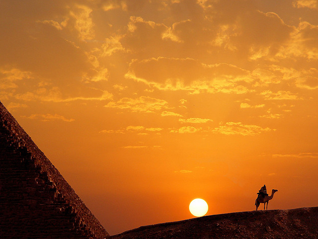 埃及共發(fā)現(xiàn)金字塔96座,最大的是開(kāi)羅郊區(qū)胡夫的三座金字塔。