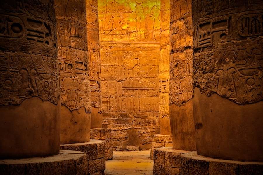 在現今盧克索的古建筑群中,保存最完整、規模最大的是卡納克神廟。它的殿堂占地達5000平方米,有134根圓柱高聳入天,其中最中間的12根高21米,5人不能合抱,通體遍布精美浮雕。400余年前,第一個走入這“多柱大廳”的歐洲人在烈日下驚呆了:“我走進去,一眼看到整行整列的巨大圓柱,還以為自己在做夢!”卡納克神廟和盧克索神廟相距不到一公里,有石路相通。