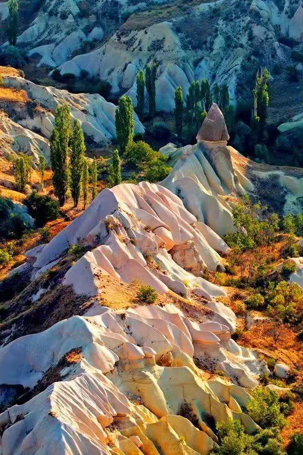 卡帕多西亞(Cappadocia,在古土耳其叫Kapadokya)以獨特的風(fēng)景聞名,奇特的巖石構(gòu)造、巖洞和半隱居人群的歷史遺跡使得這兒的“奇石林”與該國的棉堡齊名,同挾世界文化自然雙遺產(chǎn)之名,甚至還要比后者早三年入選。除了格雷梅(Greme)谷地、Ihlara峽谷等亮點,來到這兒還可以拜訪到一些令人驚嘆的地下城市。從坐熱氣球俯瞰漫山遍野的蘑菇屋、探訪當(dāng)?shù)氐镍澴游菝窬樱饺胱r洞里的五星級酒店,此情此景在其他任何阿拉伯城市都體驗不到。