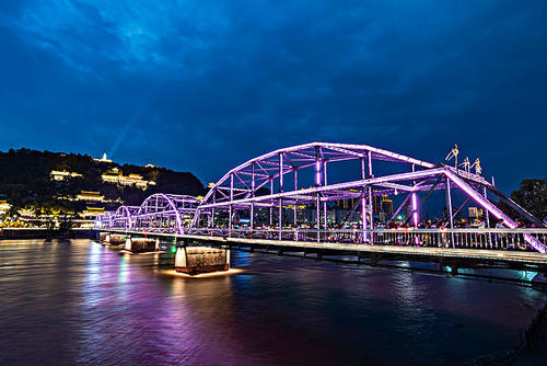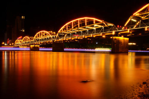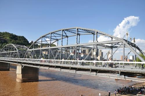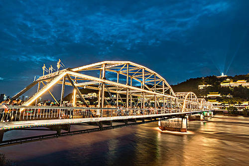“黃啟炎傳,鐵漢秦章光隴坂;河清海晏,橋虹耀彩衛(wèi)金城。”這座古老的橋梁依然橫跨黃河之上,與白塔山相呼應(yīng)。“舉頭迎白塔,緩步過黃河。對岸兩山峙,中流意興多。”趙樸初的詩句頗能勾出人的游興。和諸多橋梁相比,中山橋的觀賞和紀(jì)念價(jià)值似乎比交通作用更有意義。中山橋原名蘭州黃河鐵橋,是黃河上修建最早的鐵橋,素有“天下黃河第一橋”的美稱。位于蘭州市區(qū)中心白塔山下,南接中山路、南濱河路,北連靖遠(yuǎn)路、金城路,是蘭州市區(qū)重要交通樞紐工程。中山橋建成后,時(shí)為黃河上游和蘭州黃河兩岸唯一的橋梁,方便了兩岸經(jīng)濟(jì)生活,加強(qiáng)了蘭州與西北地區(qū)各省的政治.經(jīng)濟(jì)和文化交流。在舊中國,與濟(jì)南道口鐵橋、鄭州鐵橋同列為黃河上三大橋梁。1928年為紀(jì)念孫中山先生而改稱中山橋,沿用至今。