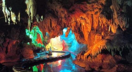 洞中景觀奇異絕頂。石山、石田、石幔、石瀑、石橋、石柱、石旗等景觀,天然自成,比比皆是,恰如天然石景公園。那些諸如“唐僧西行、神象觀潭、觀音坐蓮、王母瑤池、白龍游海、美女照鏡、淑女更衣、金蟾報曉、兄弟稱雄、浪子回頭、猴王探路”等意象景觀,活靈活現,傳神逼真。版權所有山東聊城聊之旅國際旅行社有限公司,轉載必究!尤其那壯觀氣派的“龍宮”,宮中的定海神針,高達29米,比黃龍洞中的定海神針高出1米多,粗幾倍,需幾個人才能合抱。定海神針似雕花門柱,石花燦爛,玉樹瓊花,其景其勢,國內一絕。洞府中還展示了大自然“三界”。“洞府植物界”,洞中遍生石樹、石筍、石藤、石草、石花、石葡萄,種類繁多,可謂植物標本園。“洞府動物界”,有意象中的諸如天上飛的、水里游的、陸地跑的,千姿百態,栩栩如生。這里還曾是古生命的搖籃,洞中有古河床,殘存著45萬年前的貝殼;還有5萬年前的動物腿骨化石,考古專家鑒定那是鹿和豬的骨頭?!岸锤巧锝纭?,無所不有,奇景萬千。石梯田、石壩列列在目。那石幔從“天棚”順著高高的洞壁飄然垂下,高達13米,恢宏大度,勢如瀑布。它更象劇場幕布,任由大自然的鬼斧神工或拉開或閉合。專家們認定,這石幔是中國的唯一,也是亞洲的唯一。還有那乳石音樂更是一絕。形狀各異的鐘乳石,有的成片從洞頂一瀉而下,似瀑布從天而降,洶涌澎湃;有的懸掛在洞壁,象成熟的瓜果;有的從頂棚垂掛,狀似葫蘆一字排開,長短不一卻錯落有致。在這些乳石集中的一個地方,人們用木棒輕輕地敲擊乳石,可以發出不同的音符,可以敲出悅耳動聽的音樂。要是高手,還可以敲出樂曲來。倘若詩圣杜甫聽此樂聲,定會將七絕《贈花卿》末句改成:“此曲只應洞中有,人間難得幾回聞。
