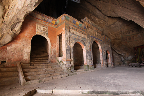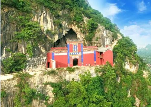 是當年蘇元春將息之所。依洞設景,別有天地。宮門進處,洞廳暢明,石刻滿壁。“古洞長春”其左,“奠麗南邦”其右,書藝精湛,分外醒目。左洞上去,是一道朱門,雕龍刻鳳,氣宇軒昂。額題:“玉闕”。對開耳門,號曰“金階”。巨幅壁刻云,“遙通帝座”。沿“金階”上去,見一座金門,稱為“天闕”。左設左禁門,右置右禁門。洞府正中,一把巨大的石傘之下,數株石筍,宛若數名仙女,簇擁“天帝”。回首身后,一道強光從高遠之處,穿山而下,那湛藍的天穹,恰似一面奪目的寶鏡,陽光就從那里直照到"天帝"的寶座之前。真是奇光天外來,滿洞放異彩。從宮右往“天橋”走去,爬到高遠的洞口,回身展望,又看到一道彩墻,圖案精美,玲瑰透剔,額題“萬物資始”。自此俯瞰山下,清溪如帶,田垌鋪金,村落點點。“保元宮”,結構精美,金門重疊,朱戶畫墻,多彩多姿,真是富麗堂皇,勝似蓬萊。洞頂題詩云,“蜿蜒步上九重天,回首山河數點煙。如今方識保元妙,幾回夢魂到小連”。美妙的“保元宮”,確令游客駐足留連。