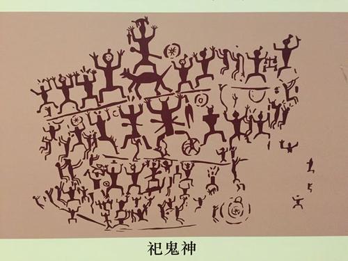 從眾多人物的姿態(tài)上看,畫面更像是一場盛大的祭祀或節(jié)日慶典。畫中人物大多雙臂向兩側(cè)平伸,曲肘上舉,雙腿分開成屈蹲,明顯是模仿青蛙的姿態(tài),而蛙神崇拜正是壯族的古老傳統(tǒng),青蛙舞至今仍在民間有所流傳;其次,畫面中出現(xiàn)很多銅鼓,這種重要的禮器也多用于祭祀場合;另外,一些人物形象有明顯的性別特征,畫面出現(xiàn)了身懷六甲的婦女、成群結(jié)隊的小人,有人認為這反映了古駱越人的生殖崇拜。據(jù)這些內(nèi)容可以推斷,畫面表達了一種歡樂、莊嚴、神圣的場面,如果不是祭祀,也是某種慶祝儀式。而在古代駱越人的生活當中,盛大的節(jié)日慶典,往往是和祭祀同時進行的,在舉行儀式的過程當中,當然也少不了敲銅鼓、跳蛙舞。