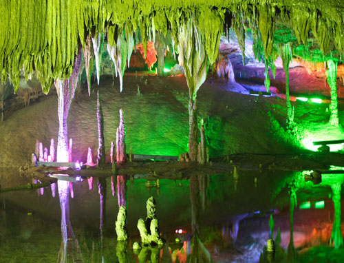 一是被游客譽稱為“中國惟美水溶洞”的地下暗河溶洞。龍宮水溶洞長達15公里,為國內之冠。目前景區對外開放了二段,長1260米,洞內鐘乳千姿百態,與北方溶洞相比更顯細致與精巧,與南方溶洞相比更顯神秘與奇特,其洞廳構造宛如神話中的龍王宮殿。“地下漓江、天上石林”的溶洞風景價值,是目前國內已發現的其它同類型景區中無以比擬的,大詩人艾青稱“大自然的大奇跡”,國畫大師劉海粟譽“天下奇觀”,中國溶洞專家感嘆“覽龍宮知天下水洞,蕩輕舟臨人間仙境”。“山不在高,有仙則名,水不在深,有龍則靈”,龍宮就是這樣的人間天堂。