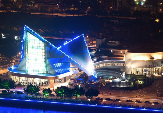 星海音樂廳位于廣州二沙島,造型奇特的外觀,富于現(xiàn)代感,尤如江邊欲飛的一只天鵝,與藍(lán)天碧水渾然一體,形成一道瑰麗的風(fēng)景線。這座以人民音樂家冼星海的名字命名的音樂廳,占地1.4萬平方米,建筑面積1. 8萬平方米,設(shè)有1500座位的交響樂演奏大廳、460座位的室內(nèi)樂演奏廳,100 座位的視聽欣賞室,和4800平方米的音樂文化廣場(chǎng)。整體建筑為雙曲拋物面鋼筋混凝土殼體,室內(nèi)不吊天花板,做到建筑空間與聲學(xué)空間融為一體。星海音樂廳總投資達(dá)2.5億元,是我國目前規(guī)模最大,設(shè)備最先進(jìn),功能完備,具有國際水平的音樂廳。