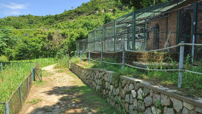 園內(nèi)約有20多種動物,其中不乏明星動物。到此一游,必不能錯過它的表演,比如“鴕鳥會跳舞,馬騮仔會上樹,小熊貓會打跟斗啊!小豬、小牛、小羊,山中有只老羊,望見八哥會說話”。在管理人員每日的餵養(yǎng)和照顧之下,有一只鴕鳥能聽指示揮舞雙翼。馬騮仔(獼猴、松鼠猴、白頰長臂猿等靈長類動物)本能地爬高爬低、蕩來蕩去。最活潑的要屬綽號“小黑”的白頰長臂猿了,它有綽號“靚女”的獼猴相陪,難怪常常引吭高歌。在籠子里受保護則不怕,要是在荒野,它一大叫,恰好洩露了自己的行蹤,往往因此惹來殺身之禍。果子貍和小熊貓常常深居簡出,有緣人才能一睹風采。