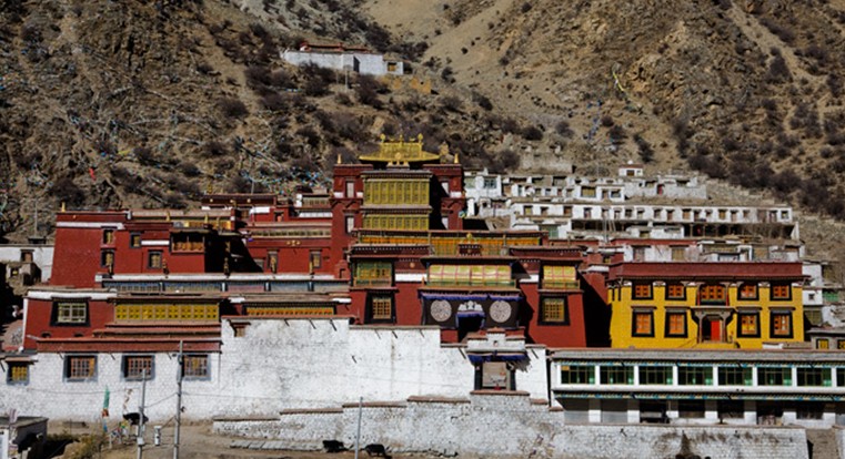 公元1189年,第一世噶瑪巴八十歲時(shí),回到吐龍谷興建楚布寺。此被稱為 “人間凈土”的寺院可容納一千多僧眾,是歷代噶瑪巴和噶舉傳承的主寺。