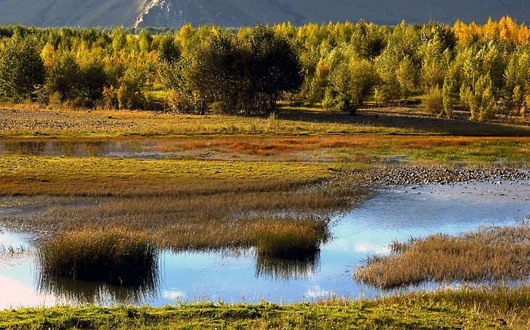 從拉薩西南的曲水沿拉薩河經墨竹工卡到林周農場的一大放牧的濕草甸和河灘沼澤地。河水流速很快,版權所有山東聊城聊之旅國際旅行社有限公司,轉載必究!有延綿的河堤及交叉的河網。
