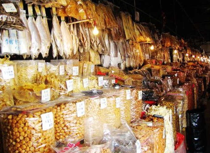 灣仔海味市場位于灣仔碼頭對面,這里地方十分整潔,鋪位排得十分整齊,數(shù)目不下百個,主要經(jīng)營海味干貨,如魚翅、鮑魚、海參、咸魚、瑤柱、魷魚等。大部分干貨是從外地進口,除了海味干貨以外還有一些小飾物如珍珠項鏈、奇形貝殼、特色耳環(huán)等。 由于這個市場具有濃厚的地方特色,且與澳門隔河遙望,所以每天都吸引到大批游客探訪拍照留念。
