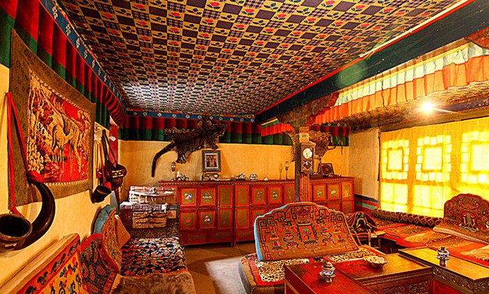 帕拉莊園頗為壯觀,現(xiàn)存房屋57間,面積5357.5平方米,主體樓高三層,建筑配套完整,裝修考究,設(shè)有經(jīng)堂、日光室、會(huì)客廳(上接待室)、臥室,還有玩麻將的專用大廳。房?jī)?nèi)雕梁畫(huà)棟,富麗堂皇。經(jīng)堂陳設(shè)考究,經(jīng)書(shū)、佛龕保存完好。經(jīng)堂是帕拉莊主念經(jīng)或舉行法事活動(dòng)的地方,堂內(nèi)雕刻、繪畫(huà)、擺設(shè)等多為內(nèi)地樣式,可見(jiàn)中原文化對(duì)其有著較大的影響。臥室中,金銀玉器琳瑯滿目;還有帕拉貴族當(dāng)年遺留下來(lái)的名貴食品、餐具、進(jìn)口酒、進(jìn)口白醋、珍貴裘皮服飾,極盡奢華之能事,生動(dòng)再現(xiàn)帕拉家族當(dāng)年的豪華生活場(chǎng)景。