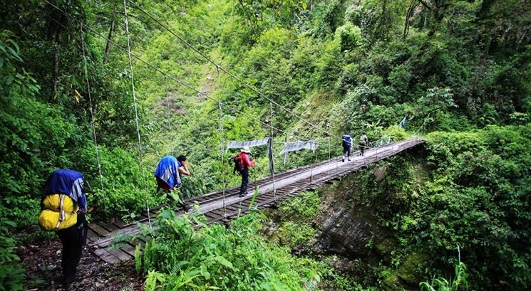 因?yàn)榈貏?shì)隱蔽,墨脫被稱(chēng)為“隱藏在云霧、雪山、密林中的人間絕域”、“地球上的最后秘境”。從前去墨脫,必須翻雪山、攀峭壁、穿密林,用自己的雙腳長(zhǎng)途跋涉、步步丈量。通往這天堂般美麗地方的道路如同煉獄,江兩岸山壁陡峭,深谷中江水洶涌,許多路段是在峭壁上鑿成的天險(xiǎn),一面是陡峭的山崖,一面是萬(wàn)丈深淵;山口處不分冬夏都是白雪皚皚,沿途是猝不及防的雪崩、驟雨、飛石、泥石流諸多艱險(xiǎn)。
