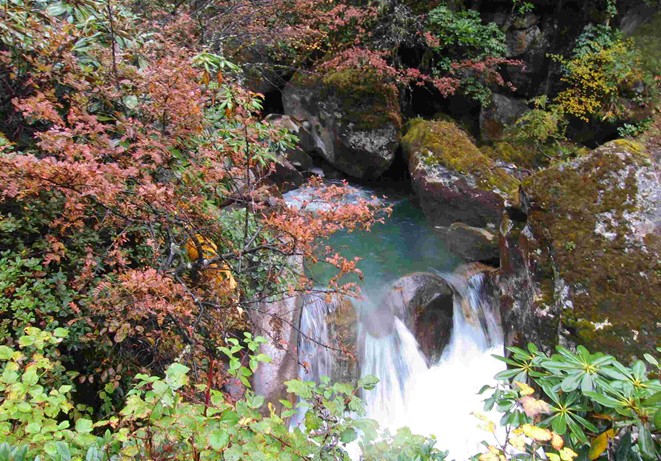 瀑布三層相疊,落差高達(dá)400米,又名“三疊泉”。層疊一層,落差高達(dá)400余公尺。它穿云越霧,由山巔奔騰飛瀉,跌落于幽河深谷。多層瀑布的最上層,是從高入云霄的雪峰中直瀉而下,激起滿谷的蒙蒙水氣,“隆隆水聲”在整個(gè)山谷轟鳴。第二層瀑布水勢(shì)急,瀑面寬大,從高處的綠樹叢中緩緩流出,然后急瀉而下。最下層斜沖到一巨石上,曲折而瀉,直至多雄拉河,形成一個(gè)個(gè)深潭。多層瀑布由于落差大,陽(yáng)光一照,瀑邊映出一條條五彩繽紛的彩虹,將河谷兩岸的風(fēng)光打扮得格外絢麗。