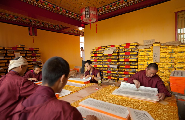 納塘寺設有著名的“納塘印經院”,它是西藏最早的一座印經院。據古代藏文史籍記載:元初武宗至大年間(1308~1311),國師尊巴絳央委托前藏歐巴•洛賽益西等人編纂藏文《在藏經》(即:《甘珠爾》和《丹珠爾》),并派洛賽益西駐納塘寺。洛賽益西與譯師索南沃賽、若南秋崩一起將藏區所有的《甘珠爾》、《丹珠爾》各種抄本搜集齊全,整理編輯了藏文《大藏經》抄本,存放于納塘寺。