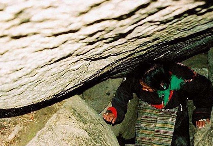 在聶瑪隆一條陡峭的山坡上,有座蓮花生大師當年的修行洞。