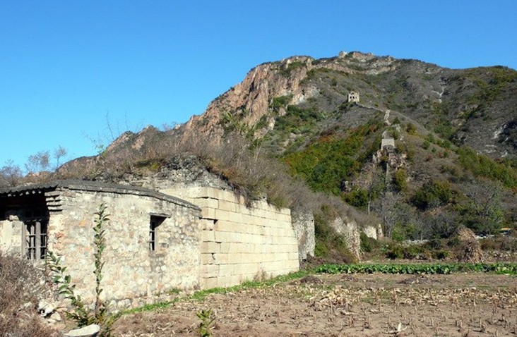 “因地形,用形制塞”是明長城常用的一種辦法,花廠峪口在低洼處筑高墻,應(yīng)用大山作為樊籬,到達(dá)了防護(hù)結(jié)果。圖為花廠峪南山上的障墻,外側(cè)似狼牙,直上山岳。老嶺在陳舊的燕山東端,山勢(shì)峻峭險(xiǎn)峻,樹林茂盛,古長城的殘?jiān)刂郊惯B綿向遠(yuǎn)方。花廠峪就是老嶺深處的一個(gè)山村,村子人家不多,散住在方圓約十幾公里的局限,隔個(gè)山梁的就算鄰人,從這家到那家上要走多半個(gè)小時(shí)。