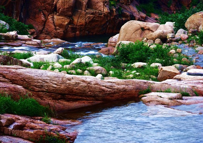 沿開花廠峪村進(jìn)溝,不斷往前走,能抵達(dá)北龍?zhí)叮戎T大的鵝卵,尤感山路坎坷難行。抬眼望去,倒是滿眼的景色。“兩岸青山相對(duì)出,潺潺溪水迎面來”。腳下鵝卵縫里的小溪,靜靜流淌著這山谷的苦衷。明澈見底的溪水里,游來游去著深思的魚兒。溝旁的山上怪石林立,同業(yè)的游人不住指指點(diǎn)點(diǎn),阿誰像王母娘娘的寶座、阿誰像扛槍的兵士、阿誰像企鵝……是啊!這花廠峪的石頭,還真是一景!英姿勃發(fā)、千姿百態(tài)、肅靜莊嚴(yán)……在巨型長塊石頭上,我們看到很多像天書一樣密密層層的小淺坑,隨行的小伙子說是槍彈洞,讓人聯(lián)想到毛主席的詩“昔時(shí)酣戰(zhàn)急,彈洞前村壁。點(diǎn)綴此關(guān)山,今朝更美觀”。進(jìn)入了峽谷,給人們的第一覺得是奇、特、險(xiǎn)。這里四處活動(dòng)著美,四處彌漫著美。花崗巖、火山巖,經(jīng)由大天然巧奪天工的雕刻構(gòu)成了神志各別的天然景象。峽谷內(nèi)十分分明的巷子,往返往來不斷穿水路的覺得超等棒,看滿山的紅葉,點(diǎn)綴著這怪石林立,真是剛?cè)嵯酀?jì)、相得益彰。版權(quán)所有山東聊城聊之旅國際旅行社有限公司,轉(zhuǎn)載必究!高山是堅(jiān)實(shí)的臂膀,怪石是傲然的風(fēng)骨,紅葉是漂亮的衣裳,溪水是流不盡的柔情。這一路走去,就是這山一程水一程,滿眼紅葉滿山情!走至岔路口,是一片大石頭,大得驚人,有的像床,有的像房,有的就像一大片平地,水石相依。坐在那片大石頭上野餐是最美但是的事。