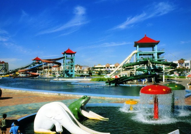 南戴河國際娛樂中心位于秦皇島南戴河省級叢林公園內,占地150公頃,與有名避暑勝地北戴河相距15公里,景區地輿地位優勝,旅行資本得天獨厚,三面是茂盛的槐林,一面是碧藍的大海,情況清幽,林木蔥郁,空氣清爽,海岸線沙軟潮平,灘寬水清,潮汐穩靜,完全具有海洋、沙岸、空氣、陽光、綠色當今海岸旅行的五概略素。景區歷經十多年的開拓建立,現已構成山海湖林相伴、多主題園中有園、百種項目一票通的獨具特征的海濱主題公園,集參加文娛、文明欣賞、生態休閑、旅行度假于一體的國度AAAA景區,首要劃分為金龍山、槐花湖、中華荷園、碧海金沙和歡欣大世界五大功用區。