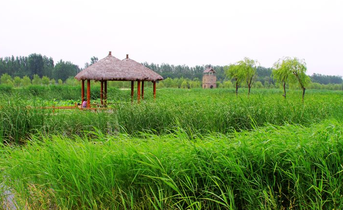 該公園以河為中心,在河兩岸種植蘆葦、蒲草,形成的濱水綠帶。用地總面積 4500畝,其中,水面積1000畝,綠化面積(人工改造部分)500畝。現種植各類苗木110多萬株、其中喬木1.5萬株,灌木40萬株,地被植物21萬株,水生植物45萬株,綠化工程投資120 萬元。常綠樹4種有雪松、黑松、龍柏、黃楊等;落葉樹20多種,如國槐、垂柳、合歡、苦楝等;藤本及地被植物有迎春、月季、凌霄、五葉地錦等;宿根花卉及應時花卉10多種,水生植物10多種。