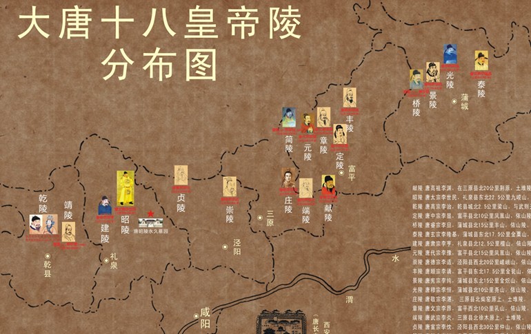 昭陵陵園周長60公里,占地面積200平方公里,共有陪葬墓180余座,被譽為“天下名陵”,是我國帝王陵園中面積最大、陪葬墓最多的一座,也是唐代具有代表性的一座帝王陵墓。從唐貞觀十年(公元636年)太宗文德皇后長孫氏首葬到開元二十九年(公元743年),昭陵陵園建設(shè)持續(xù)了107年之久,地上地下遺存了大量的文物。它是初唐走向盛唐的實物見證,是我們了解、研究唐代乃至中國封建社會政治、經(jīng)濟、文化難得的文物寶庫。