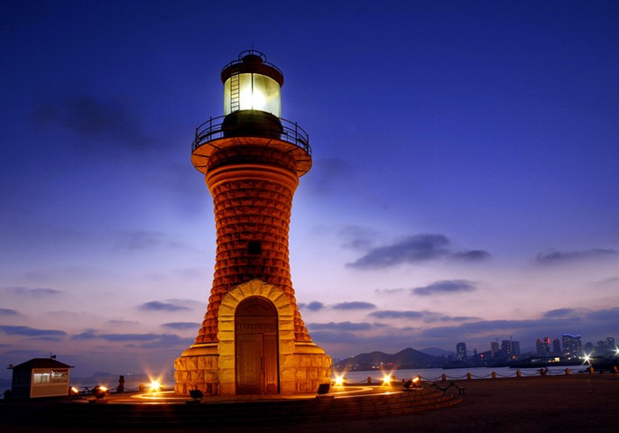 環(huán)繞廣場周圍的是大型音樂噴泉,從廣場中央大道中心點北行500米是會展中心,南行500米是藍色的大海,中央大道紅磚鋪地,兩側(cè)綠草如海。星海廣場背倚都市,面臨海洋,令人倍感心曠神怡。