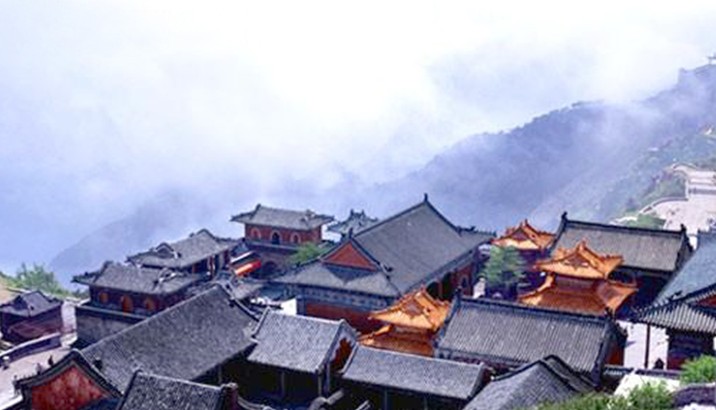 西神門與天街相連,東神門與通玉皇頂?shù)谋P道相接,兩門形式相同,均石砌拱 形門洞,高3.4米,寬3.25米,進(jìn)深5.4米。上筑閣樓各3間,面闊8.8米,進(jìn)深3.5 米,通高4.9米,二柱六檁六架梁,重梁起架,卷棚歇山頂,施墨線小點金彩繪。