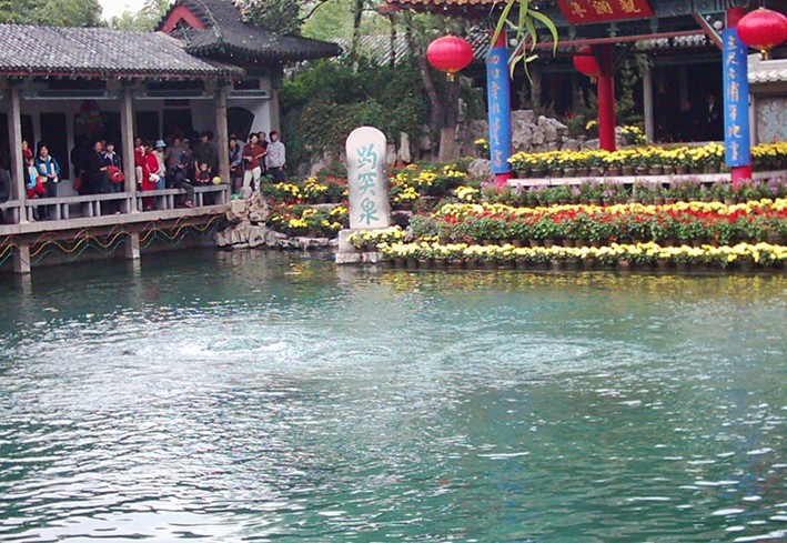 濟南素有泉城之稱,有“家家泉水,戶戶垂柳”的贊語。市區的泉水依其地理分布,大體可分為四大泉群:趵突泉泉群、五龍潭泉群、黑虎泉泉群和珍珠泉泉群。趵突泉是濟南72名泉的第一泉。趵突是跳躍的意思。北魏地理學家酈道元在《水經注》中寫道:“ 泉源上奮,水涌若輪”。 宋文學家曾鞏等根據泉水涌出的形狀,取名趵突。 趵突泉公園始建于1956年,其名勝古跡,文化內涵極為豐富,是具有南北方園林藝術特點的最有代表性的山水園林。