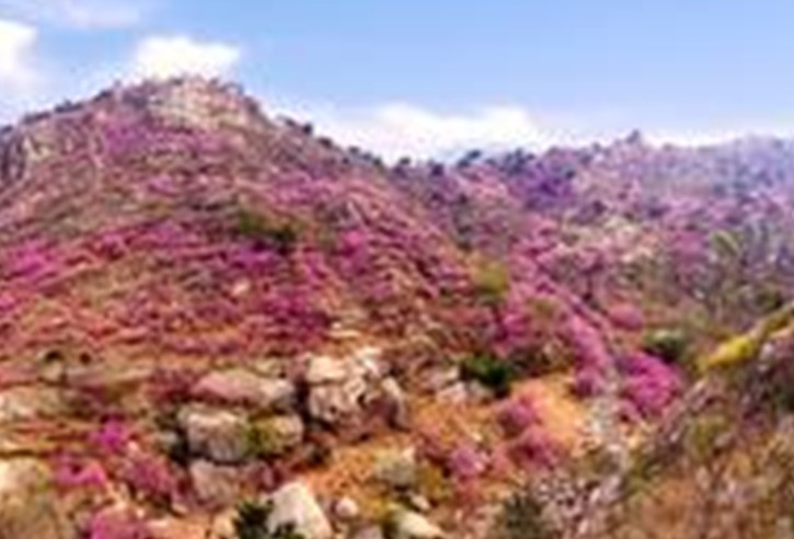 在大珠山東麓,有一條山谷,人稱珠山秀谷。這條山谷有5里之長(zhǎng),谷內(nèi)溪水奔流,匯入山下的人工湖。碧水和青山相依相擁,青峰倒映在碧水中。游人繞湖邊行,緣溪水入山谷,猶如走進(jìn)畫境。珠山秀谷里春天來(lái)得早。清明節(jié)還不到,山谷入口處的櫻桃花、杏花、桃花相繼盛開(kāi)。清明節(jié)一過(guò),在山谷里的溪水畔和山坡上,嬌黃的連翹花團(tuán)團(tuán)簇簇,潔白的棠梨花一片連一片。春風(fēng)吹拂,花枝搖曳,山谷里金波涌動(dòng),雪浪起伏。再往山谷深處走,有一道花的山峰縱向而立,又把這條山谷分成兩條山谷。順北面的山谷繼續(xù)前行,只見(jiàn)南面背陰山坡上,紅色的杜鵑花從谷底一直開(kāi)到山頂,就連山崖上和峭壁上,也花叢茂盛,花影綽約。站在山下往山頂望去,“花浪”排空,直接藍(lán)天,叫人覺(jué)這花兒是天界飄下的芳菲;站在山坡高處向下望,“花潮”滾滾,滿山谷里騰著花煙花霧,叫人想到這花兒是大地深處生發(fā)出的瑞氣紫光。沿著花間的石階路走,你的周圍到處是花的洪流,花的瀑布,人被裹進(jìn)了花的漩渦中。進(jìn)入4月,珠山秀谷里花如海,人也充谷盈川,花事和游人匯成了旅游潮。登上山頂,可見(jiàn)南面有好幾條山谷里也盛開(kāi)著杜鵑花,遠(yuǎn)遠(yuǎn)望去,如云似霞。