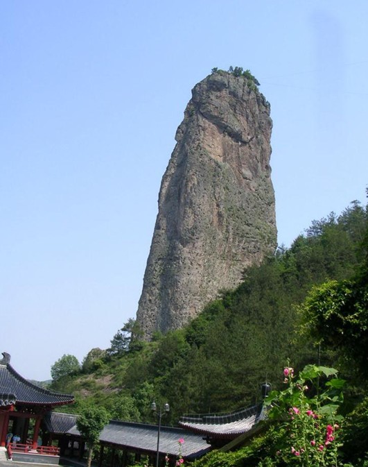 在遇真宮上方,有一天然石崮高約10米,形貌酷似一只回首梳羽的仙鶴,其悠悠沉靜之狀,甚合于道家主張的自然從容、寧靜淡泊思想,因而頗為道家推崇,亦為歷代游者稱奇,被尊為鶴山諸景之首。鶴山亦以此石而彰名。