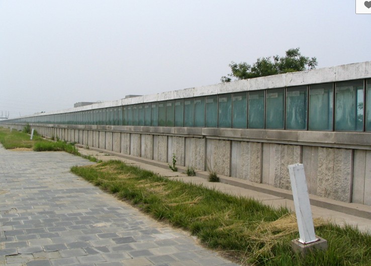碑體由巖石基座和1093個盛有黃河水樣的方形玻璃水罐組成, 東西長790米,高2.5米,寬0.9米。碑斷面構造自下而上依次為:毛石基礎、淺白色花崗巖碑座、鋼化玻璃水罐、碑頂。黃河水樣取水工程由水利部黃河水利委員會動員系統(tǒng)員工于1994年8月27日10時,版權所有山東聊城聊之旅國際旅行社有限公司,轉載必究!同時從黃河源頭到入??诿扛?公里取水0.5立方米,共取1093個水樣,分別注入刻有經緯度的方形玻璃罐中,按取水順序自源頭至入??谝来闻帕?。