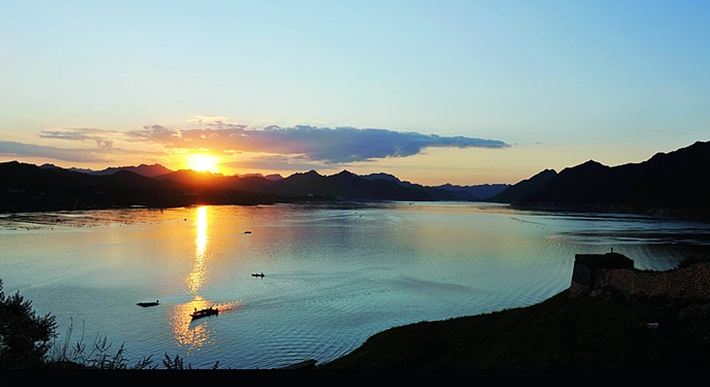 塞外蟠龍湖旅游風(fēng)景區(qū)(潘家口水庫)位于承德市寬城滿族自治縣西部,距寬城縣城25公里,距承德市區(qū)135公里。她是一個由10萬畝水域,150平方公里的生態(tài)山場和明代長城景觀組成的風(fēng)景區(qū)。是因國家重點“引灤入津”水利樞紐工程--潘家口水庫的建成蓄水而形成的人工湖。因空中鳥瞰湖面恰似一條巨龍婉蜒游動而得名。塞外蟠龍湖是鑲嵌在燕山深處、長城腳下的一顆燦爛明珠,也是承秦朝陽旅游線上的一段“黃金水道”,它集人文景觀與自然景觀于一體。來到景區(qū),自湖邊入口登船,緩緩前行,好一派江南水鄉(xiāng)風(fēng)光。小蓬萊島有如仙境,若隱若現(xiàn);蛤蟆石、烏龜島時起時伏;一線天、蟠龍洞、十里畫廊鬼斧神工,如在畫中游。山一重,水一重,柳暗又花明。版權(quán)所有山東聊城聊之旅國際旅行社有限公司,轉(zhuǎn)載必究!聞名天下的潘家口水上長城和喜峰口水下長城雄偉而壯觀。古老的灤河水擁關(guān)漫隘,紫塞青峰倒映水中,湖光山色交相輝映。喜峰口水下長城是景區(qū)的精典之作,長城主體部分淹沒水下,僅有局部關(guān)城露出水面,淹沒水下的部分墻體隱約可見。長城沿關(guān)城東西兩側(cè)出水往山脊延伸,這在長城人文景觀中可謂獨具特色。這里有歷代詩文碑林,有喜峰口來歷的動人傳說,有姜文執(zhí)導(dǎo)并主演的電影《鬼子來了》外景基地。原汁原味的長城風(fēng)貌,使這里成為一個開放式的長城博物館。這里的長城使您每到一處都能觸摸到千年歷史,遙想當(dāng)年金戈鐵馬,鼙鼓滄桑,低吟一首《飲馬長城窟行》;目光搜尋著城墻的道道彈痕,耳畔響起抗日炮火的轟鳴,一曲雄壯的《大刀進行曲》引您穿越時空,領(lǐng)略當(dāng)年長城抗戰(zhàn)大刀隊勇士們的風(fēng)采,民族精神,中華之魂令人振奮不已。