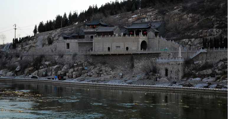 黑龍洞上的廟宇建筑群稱風(fēng)月關(guān),版權(quán)所有山東聊城聊之旅國際旅行社有限公司,轉(zhuǎn)載必究!又名“滏口祠”,坐落在神麋山陽一條東西長數(shù)十米的石券之上。是一組具有濃郁民族風(fēng)格的古建筑群,始建于唐代。廟院內(nèi)有黑龍爺塑像,廟東側(cè)建有上下兩層琉璃瓦頂?shù)睦ド矫髟麻w,閣內(nèi)供有觀音菩薩像。券西口石上刻有“風(fēng)月關(guān)”三字。由西門拾級而上進入廟院,院內(nèi)坐南向北建有卷棚式歇山頂、深寬各三間的黑龍廟,廟內(nèi)有黑龍爺塑像。前廳西墻上還嵌著明進士張應(yīng)登親書“登昆山明月閣觀泉”詩的石刻一塊。據(jù)史載,該閣、廟均始建于唐代,由于歷代重修改建,已失去原貌,但其建筑莊重緊湊,具有濃厚的民族風(fēng)格。