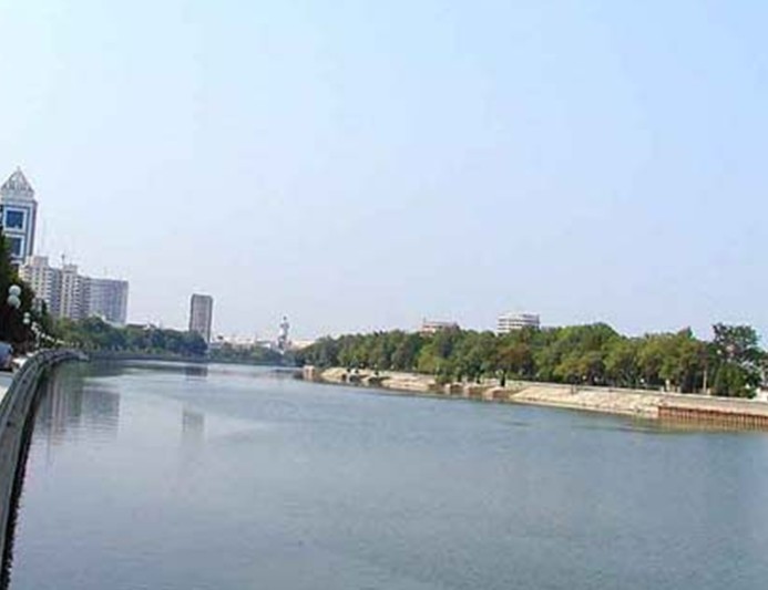 海河公園,是天津人民最喜歡散步、游玩、休憩的地方之一。在三岔口緊靠獅子林橋的水面上,有兩組銅質塑像,這是海河公園的起點。其中,一組塑像是兩條雄踞的蛟龍,它們相對昂首嬉戲,龍首中間有一枚彩色圓珠懸空疾轉,龍口噴出丈余高的水霧,構成一幅生機盎然的“二龍戲珠”;一組塑像是頑皮可愛的哪吒,腳踏風火輪,手持降魔圈,身騎一條蛟龍,威風凜凜,氣蓋山河,再現了我國古代神州傳說“哪吒鬧海”的生動場景。在兩組塑像的周圍,懸掛著一串串七色彩燈。每逢傍晚,蒼穹深遽,祥云渺茫,彩燈閃閃爍爍,水聲嘩嘩作響,水霧團團迷濛,如若置身其間,便會立即有一種飄飄欲仙之感。