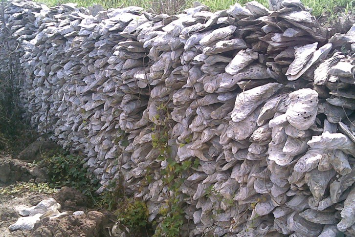 牡蠣灘分布在寶坻縣南部和寧河縣中部、東部地區(qū),由海灣環(huán)境下的長(zhǎng)重蠣和近江重蠣的尸積群和埋葬群組成,為距今5800~2200年前的產(chǎn)物。牡蠣生長(zhǎng)在潮間帶下部和潮下帶水面下,故將牡蠣層的頂面作為判定當(dāng)時(shí)海平面的標(biāo)志之一。寧河縣的牡蠣灘呈帶狀東西向分布,表明當(dāng)時(shí)潮汐方向?yàn)槟媳毕颍c現(xiàn)代相近。面積最大的牡蠣灘在寧河縣西部東棘坨鄉(xiāng)史莊子到姜莊子間的河道中,東西長(zhǎng)1000米,南北寬730米,面積73公頃。厚度最大的牡蠣灘位于寧河縣東部靠京山鐵路的裴莊,牡蠣層厚度大于5米。牡蠣灘中牡蠣殼占90%以上,牡蠣殼個(gè)體直徑最大者50厘米,最小者幾厘米,與生長(zhǎng)速度有關(guān)。尸積群以坐姿為主,埋葬群以臥姿、瓣殼為特征,反映當(dāng)時(shí)海灣比較寧?kù)o,海水清澈。2200年前海平面比現(xiàn)今高出1米左右。