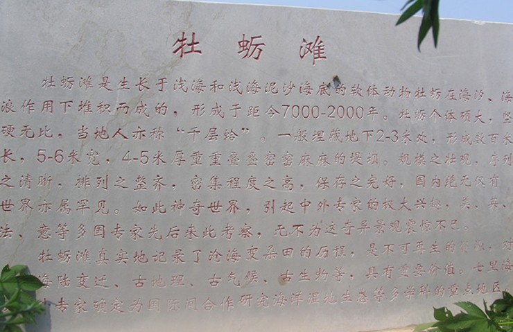 蠣灘形成于距今7000-2000年,是世界上迄今發(fā)現(xiàn)的規(guī)模最大、分布最廣、序列最清晰的古海岸遺跡。分布在寶坻縣南部和寧河縣中部、東部地區(qū)。它是由牡蠣殼堆積而成的,從中可以反映出古海灣的變遷。天津的牡蠣灘,無(wú)論從面積上,還是從厚度上,都是世所罕見的,如寧河縣西部東棘坨鄉(xiāng)史莊子到姜莊子間的河道,以及寧河縣東部靠近京山鐵路的裴莊,這兩地牡蠣灘的規(guī)模、剖面層厚度、清晰度、殼體長(zhǎng)度世所罕見,對(duì)海洋生態(tài)及海陸變遷等學(xué)科的研究具有寶貴的價(jià)值。