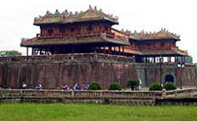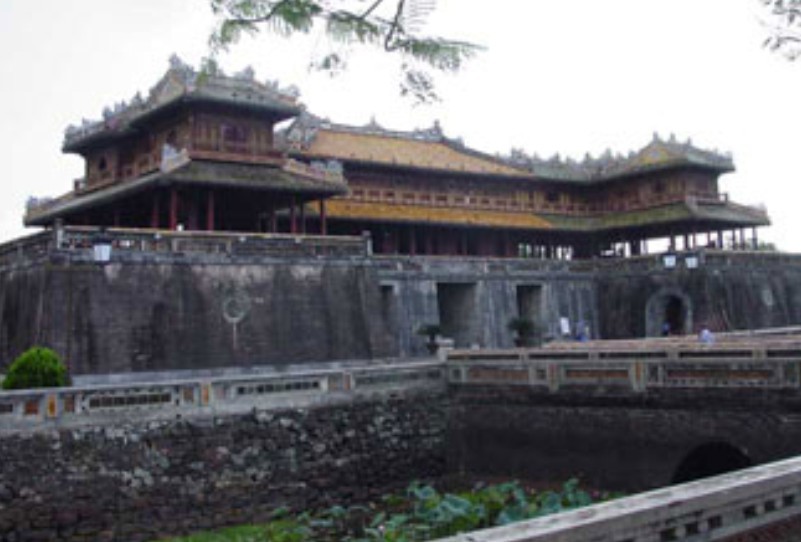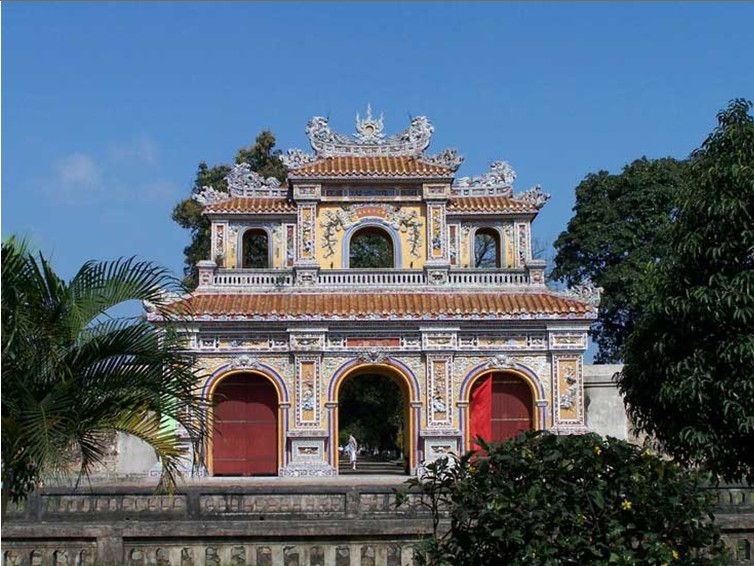 越南順化故宮正門。規(guī)模比中國北京故宮的午門小,但其式樣基本一樣。平面呈冂形,下有高大的磚石墩臺,臺正面圍以垛墻。墩臺有5門,正中門高5.32米,寬3.28米,門正中上方有“午門”兩個(gè)大字。當(dāng)初字外包金,1943年12月10日包金被竊。墩臺上建樓5座,名五鳳樓,樓分兩層,氣勢巍峨。下層正中是“御座”。上層為各宮人觀禮之所。當(dāng)時(shí),午門只在慶典節(jié)日開放。午門也是阮氏王朝被埋葬的見證,1945年8月30日阮朝末代皇帝被迫在此正式宣布遜位,并把金印和寶劍交給越南臨時(shí)政府代表團(tuán)。午門建于阮朝明命十四年(公元1833年),啟定三年(1921年)重修。抗戰(zhàn)期間遭炮火破壞,現(xiàn)已修復(fù)。以前,阮朝嘉隆初年曾在午門現(xiàn)址建有南闕臺。