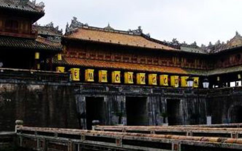 有百官辦公的六部區(qū),有國子監(jiān)、機(jī)密院、都察院、史館、內(nèi)閣、習(xí)賢院。順化京城內(nèi)最主要的部分是皇城,皇城采用了北京故宮的建筑圖紙,所以你會發(fā)現(xiàn)自己進(jìn)入了一個(gè)縮小版的北京故宮。內(nèi)有紫禁城,紫禁城里又分為兩部分,前面有皇帝平時(shí)處理政務(wù)的勤政殿,后面有皇帝居住的乾成殿,皇后住的坤泰宮,皇太子居住的光明殿,其他后妃居住的順輝院等。皇城內(nèi)還設(shè)有旗臺、太和殿和祭祀歷代皇帝的宮廣殿和廟宇。整個(gè)建筑頗為壯觀,是越南現(xiàn)存最大最為完整的古建筑群。